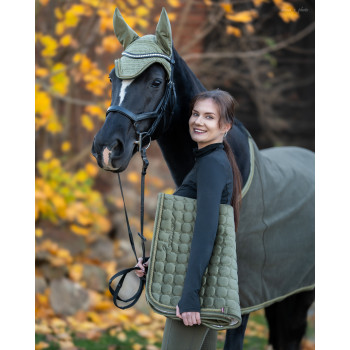 Podszycie z czystej bawełny w przestrzennym wzorze waflowym jest przewiewne, chłonne i wyjątkowo delikatne w kontakcie ze skórą konia, wspomagając szybkie odparowywanie potu.